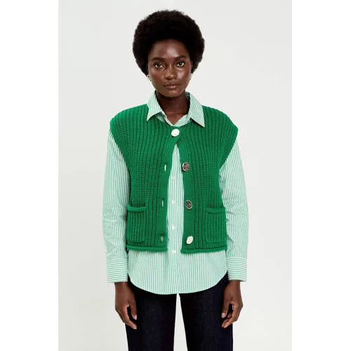 Dit Cache Cache dames gilet katoen effen is een veelzijdige laag voor uiteenlopende outfits. Het mouwloze model met ronde hals valt mooi aangesloten langs het lichaam en sluit met een knoopsluiting aan de voorzijde. De effen kleur zorgt voor een rustige basis, waardoor het gilet eenvoudig te combineren is met verschillende tops, blouses of jurken. Het materiaal is gemaakt van katoen met polyester, wat zorgt voor een prettig draaggevoel en een vormvaste kwaliteit die het model ondersteunt.Verfijnde details voor dagelijks gebruik Mouwloos gilet dat veel bewegingsvrijheid biedt Ronde hals voor een rustige en tijdloze uitstraling Knoopsluiting aan de voorkant voor eenvoudig aan en uit Effen ontwerp dat makkelijk te combineren is Gemaakt van katoen en polyester voor comfort en vormbehoud Zonder zakken voor een glad en strak silhouet Valt klein volgens het maatadviesStijlvol in verschillende settingsMet dit gilet creëer je snel een verzorgde look voor werk, een etentje of een dag in de stad. Het mouwloze ontwerp maakt het geschikt over een T shirt in warmere seizoenen en over een blouse of coltrui wanneer het frisser is.Cache Cache als vertrouwd modemerkCache Cache richt zich op toegankelijke mode met een eigentijdse uitstraling. Het merk combineert draagcomfort met doordachte pasvormen en heldere designs, zodat je eenvoudig een complete garderobe samenstelt die past bij verschillende momenten van de dag.Een gilet dat je garderobe op een stijlvolle en praktische manier aanvult.