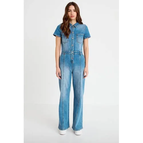 Deze Cache Cache denim jumpsuit is een fijne basis voor dagen waarop je weinig tijd hebt, maar er toch verzorgd uit wilt zien. De wijde pasvorm geeft een ontspannen uitstraling, terwijl de Amerikaanse kraag het geheel een moderne, strakke lijn geeft. Gemaakt van comfortabel denim met katoen, voelt deze jumpsuit stevig aan en beweegt deze soepel met je mee.Details die het verschil maken Gemaakt van denim met katoen, polyester en elastaan voor een lichte stretch Wijde pasvorm die soepel rond het lichaam valt Korte, rechte mouwen voor een luchtig gevoel Amerikaanse kraag met knoopsluiting over de hele lengte Borstzakken en zijzakken voor praktische opbergruimte Verkrijgbaar in maat 32 tot 42 Maatadvies: dit model valt klein, een grotere maat kan comfortabeler zittenComfortabel in dagelijks gebruikDeze wijde jumpsuit is geschikt voor uiteenlopende momenten, van een werkdag tot een ontspannen dag in de stad. Het denim geeft structuur, terwijl de lichte stretch zorgt voor bewegingsvrijheid. Door de knoopsluiting is aan- en uittrekken eenvoudig.Verzorgd ontwerp van Cache CacheCache Cache staat voor toegankelijke mode met aandacht voor pasvorm en details. Bij deze jumpsuit zie je dat terug in de combinatie van een moderne kraag, praktische zakken en een doordachte materiaalmix. Het merk richt zich op kleding die prettig draagt en tegelijk netjes oogt.Een jumpsuit die gemak, stijl en dagelijks draagcomfort op een heldere manier samenbrengt.