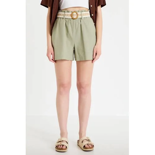 Cache Cache regular high waist casual short met linnen grijsgroen Prijzen