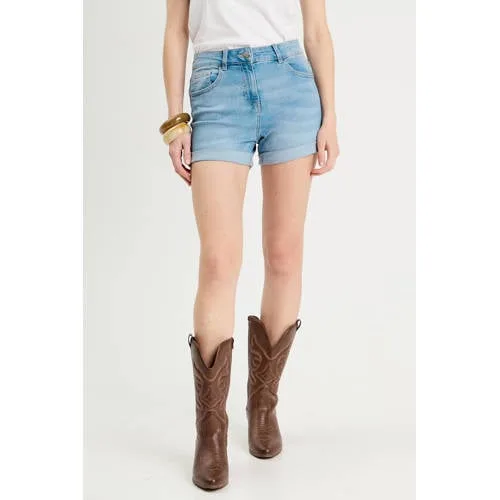 Deze lichtblauwe dames denim short van Cache Cache is een praktische basis voor zonnige dagen. De korte slim fit sluit nauw aan langs de benen en de standaard taille sluit comfortabel aan rond je middel. De soepele denim met lichte stretch beweegt met je mee, zodat je je de hele dag vrij kunt bewegen.Handige details voor elke dag Korte slim jeans met regular waist voor een slanke, aangesloten pasvorm Rits- en knoopsluiting aan de voorkant voor makkelijk aan- en uittrekken 5-pocket model: 2 steekzakken en 1 muntzakje voor, 2 opgestikte zakken achter Lussen in de tailleband zodat je de short ook met riem kunt dragen Broekspijpen met omgeslagen zoom voor een casual zomerse look Gemaakt van denim met 98% katoen en 2% elastaan voor een zachte touch en lichte stretch Kleur: light blue, makkelijk te combineren met T-shirts, tops en blouses Maatadvies: dit artikel valt relatief klein uitZo draag je de shortDeze korte jeansshort past bij veel momenten in je dag. Combineer met een losvallend T-shirt en sneakers voor een casual look, of met een luchtige blouse en sandalen op een warme zomerdag.Over Cache CacheCache Cache richt zich op kleding voor elke dag, met aandacht voor draagcomfort en actuele trends. De collecties zijn ontworpen zodat je eenvoudig combinaties maakt die bij jouw stijl passen.Een short die je zomergarderobe op een praktische manier compleet maakt.