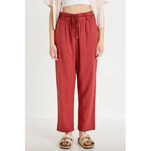 Cache Cache straight high waist casual broek met linnen koraalrood