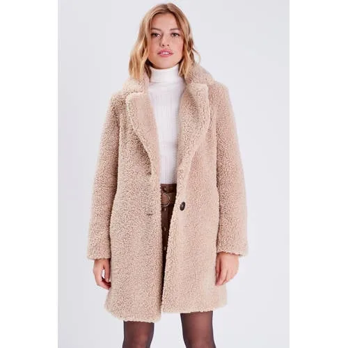 Deze damesjas van Cache Cache houdt je warm in de winter. Gemaakt als een teddyjas met lange mouwen en een button down kraagvorm. Hij heeft een knoopsluiting en handige zijzakken.