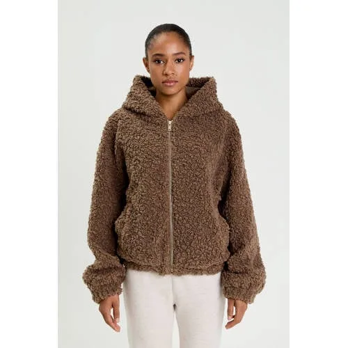 Ga warm en comfortabel de deur uit met deze bruine Cache Cache teddy jas met capuchon. De zachte teddylook en de praktische details maken dit een jas die prettig aanvoelt tijdens koude dagen. De capuchon geeft extra bescherming tegen wind en kou, terwijl de aangesnoerde onderkant het silhouet subtiel vormgeeft.Warme teddy jas met praktische details Teddy jas voor winterse dagen, in een rustige bruine kleur Met capuchon voor extra warmte en een casual uitstraling Aangesnoerde onderkant voor een zachte, moderne pasvorm Lange mouwen en zakken voor aan de voorkant Volledig gevoerd met 100% polyester voering Verkrijgbaar in maten XXS tot XXLComfortabel in het dagelijks levenDeze winterjas sluit goed aan door de aangesnoerde onderkant, wat prettig is tijdens wandelen, boodschappen doen of onderweg naar werk of school. De capuchon biedt uitkomst op dagen met wind of lichte neerslag en de zakken voor zijn handig voor kleine essentials of om je handen in op te warmen.Cache Cache: eigentijdse stijl voor alledagCache Cache richt zich op moderne vrouwen die houden van toegankelijke mode met een actuele uitstraling. De collecties combineren draagbare ontwerpen met doordachte details, zodat kleding niet alleen mooi oogt maar ook praktisch is in het dagelijks gebruik.Een zachte teddy jas waarin je de winter op een aangename en stijlvolle manier doorkomt.