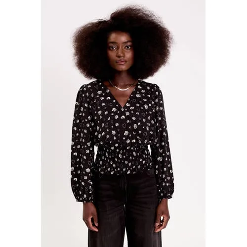 Deze top van Cache Cache heeft lange rechte mouwen en een v-hals. De top is gemaakt van 100% polyester. De top heeft een hartjesprint en smockwerk, je kiest een maat groter als je meer ruimte wilt.