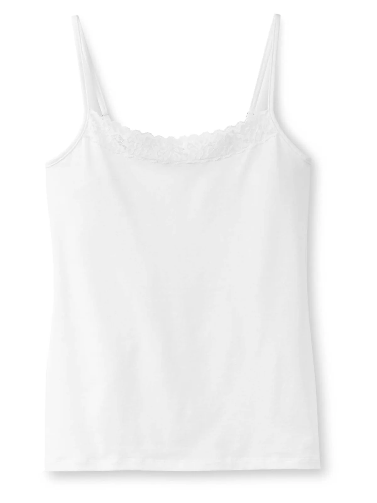 Materiaal: Jersey; Halstype: Ronde hals; Motief: Effen; Soort bandjes: Spaghettibandjes; Details: Kant; Extra's: Verstelbare bandjes, Op staal naden, Voelt zacht aan; Pasvorm: Slanke pasvorm; Armlengte: Mouwloos; Lengte: Normale lengte