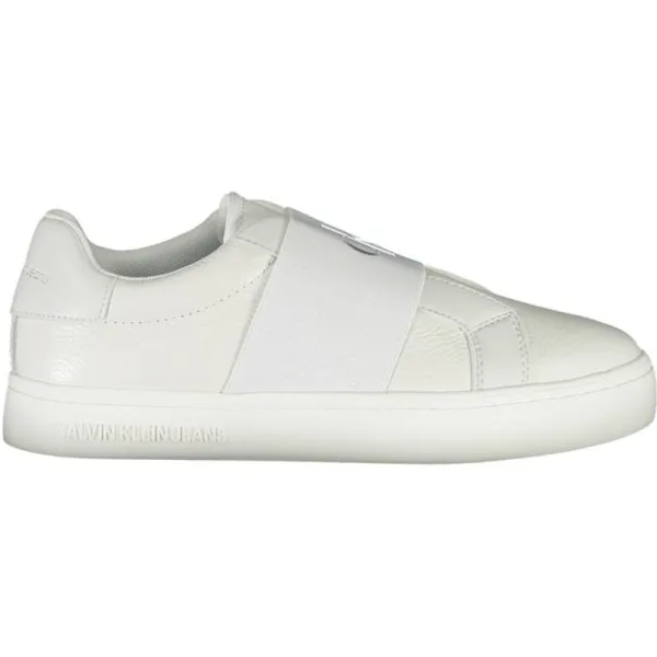 Stap moeiteloos stijvol in met deze slanke CALVIN KLEIN sneakers. Deze schoenen combineren mode en functie en stralen een sportieve elegantie uit met een elastische banddetail, versierd met het iconische logo voor die stempel van hoogwaardige goedkeuring. De contrasterende texturen en de frisse Bianco tint maken ze een opvallende must-have in je garderobe. Perfect voor wie een gedurfde statement wil maken en tegelijkertijd waarde hecht aan comfort en kwaliteitsvakmanschap. Materiaal: 40% polyester, 30% leer, 30% polyurethaan. Land van herkomst: China. Kleur: Bianco.