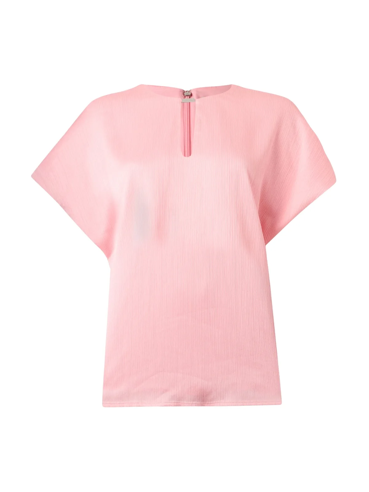 Blouse type: Blouseshirt; Design: Gevoerde zoom/rand, Rechte zoom; Type sluiting: Ritssluiting; Motief: Effen; Kraag: Zonder kraag; Details: Cut-outs; Extra's: Lichte stof, Met textuur; Pasvorm: Normale pasvorm; Armlengte: Kwartmouw; Lengte: Normale lengte