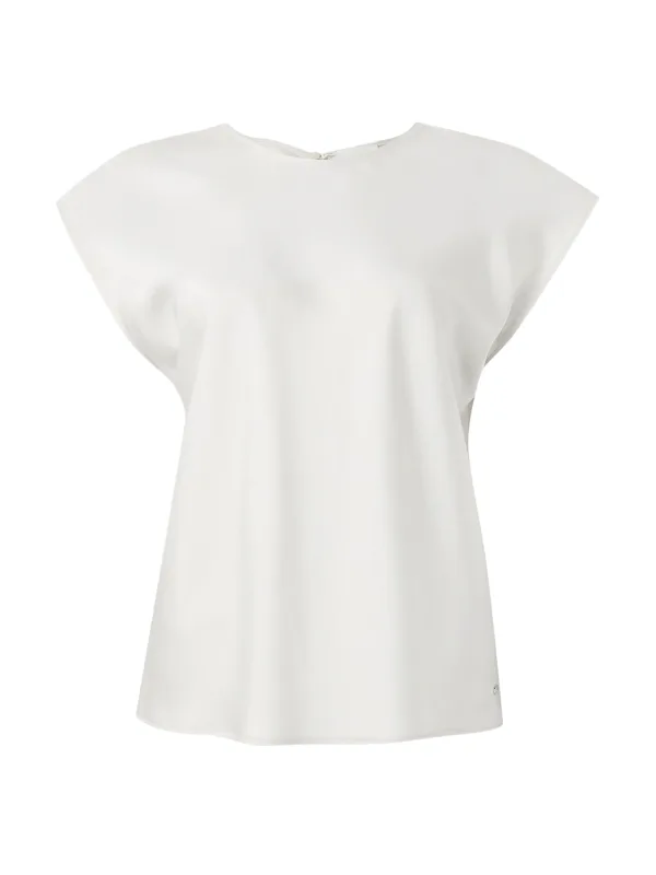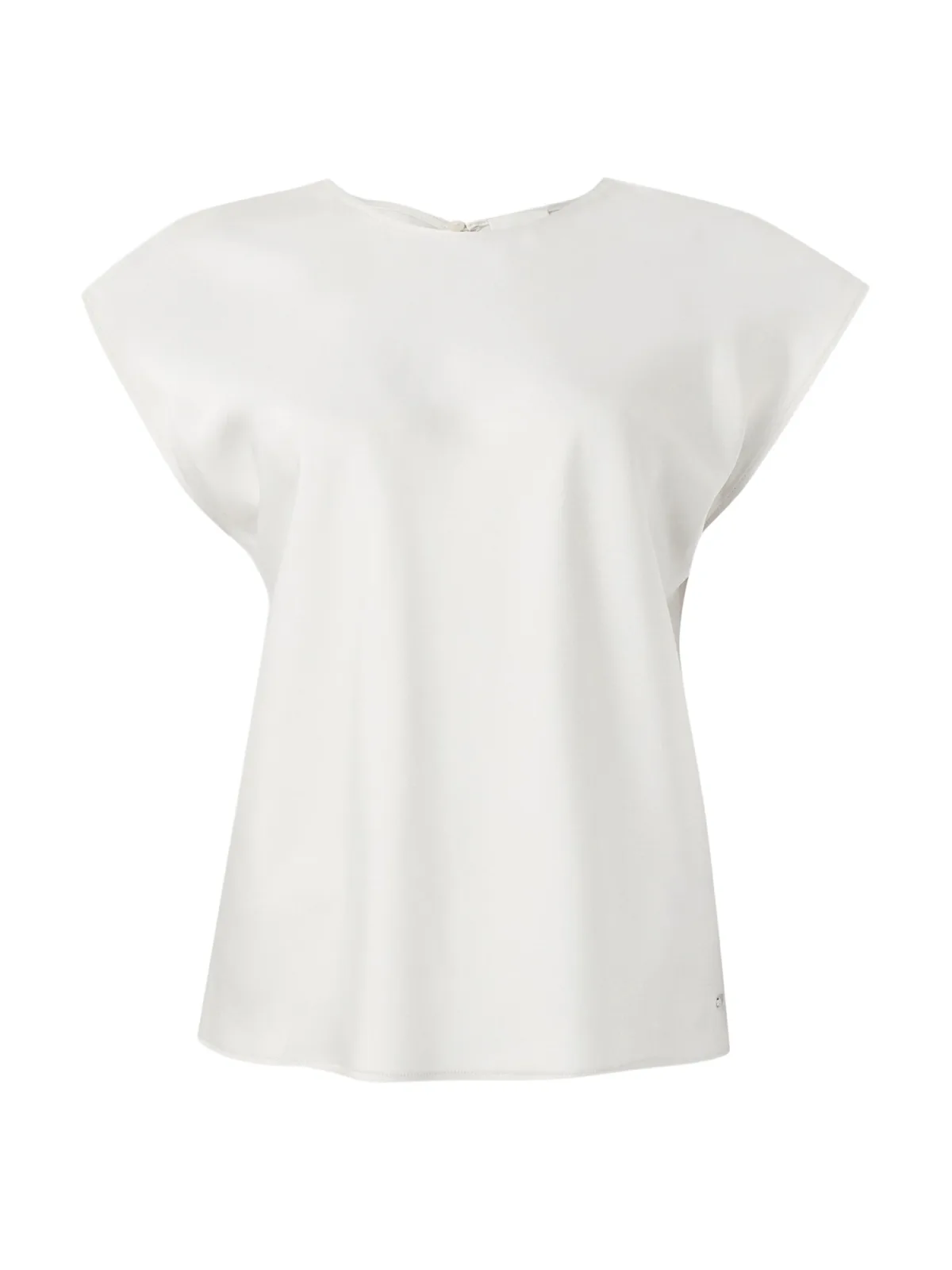Blouse type: Blouseshirt; Design: Gevoerde zoom/rand, Rechte zoom; Materiaal: Satijn; Motief: Effen; Kraag: Zonder kraag; Extra's: Op staal naden, Gladde stof; Pasvorm: Normale pasvorm; Armlengte: Mouwloos; Lengte: Normale lengte