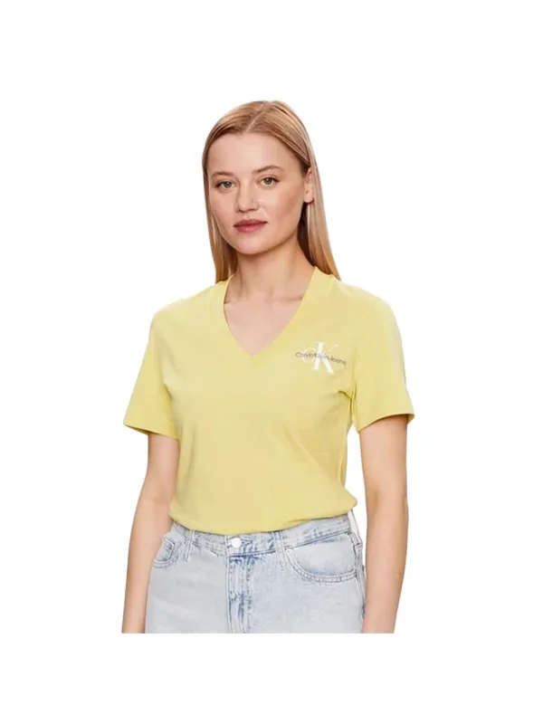Calvin Klein Classic Logo CK Regular dames T-shirt, geel, katoen. Authentiek Calvin Klein kledingstuk - streetwear/sportkleding design van Calvin Klein - Calvin Klein voor dames, modieus en perfect voor dagelijks gebruik - dit gele Calvin Klein T-shirt past perfect bij de rest van je garderobe - comfortabele katoenen kwaliteit - klassiek - Classic Logo CK Regular
