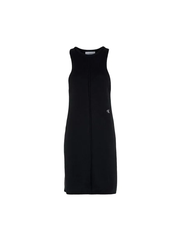 Calvin Klein Maille jurk voor dames, zwart katoen. Authentiek Calvin Klein kledingstuk - streetwear/sportkleding design van Calvin Klein - Calvin Klein voor dames, modieus en perfect voor dagelijks gebruik - deze zwarte Calvin Klein jurk is ideaal te combineren met de rest van je garderobe - comfortabele katoenkwaliteit - klassiek - Maille -