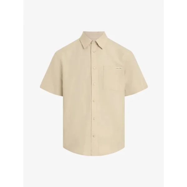 De Calvin Klein Linnen Blouse in de kleur White Pepper heeft een linnen-katoenmix, zachte, ventilerende stof, regular fit, puntkraag, korte mouwen, ronde zoom, knoopsluiting en Calvin Klein-logo embleem op de borstzak.