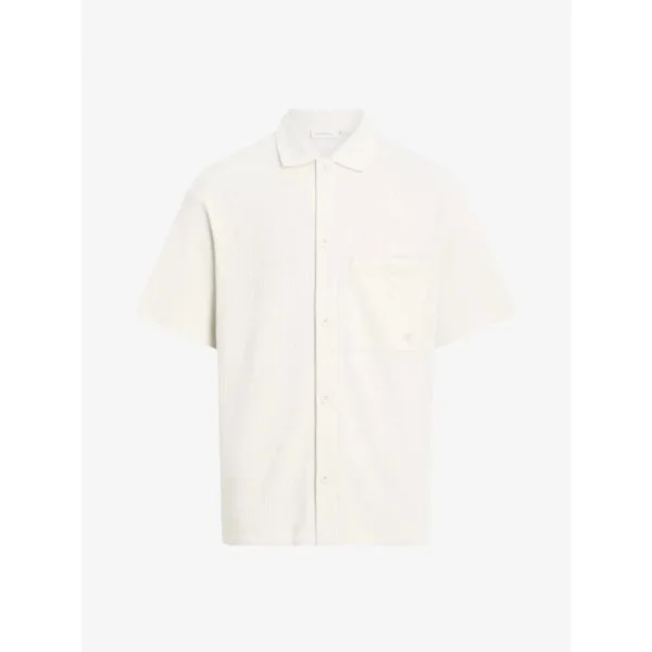 De Calvin Klein Waffle Blouse in de kleur Silver Birch heeft een knoopsluiting, borstzakje, kraagje en wafelkwaliteit. Combineer samen met de bijpassende short.