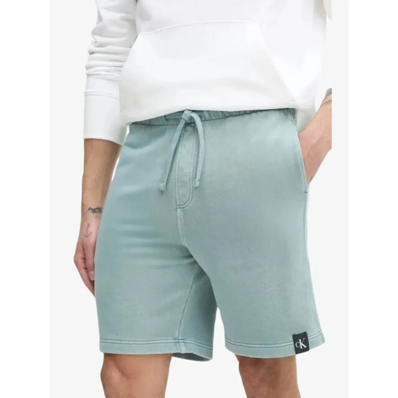 De Calvin Klein Garment Dye Short in de kleur Trooper heeft een katoenen loopback-badstof, regular fit, elastische tailleband met trekkoord, zakken in de zijnaad, paspelzakken achter, geverfd garen wassing en Calvin Klein-logo op de zoom.