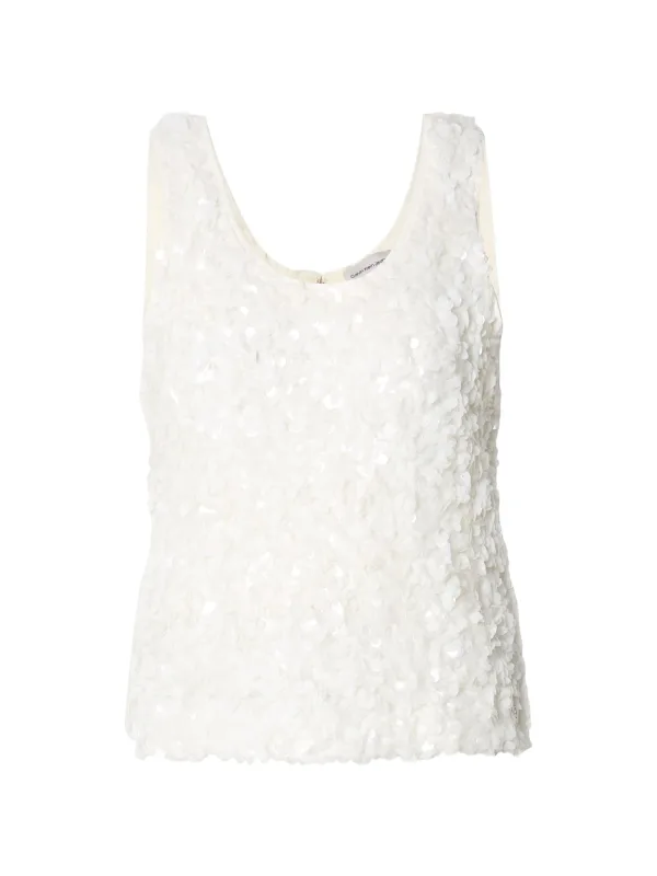 Blouse type: Blouseshirt; Design: Recht model, Diepe snit/decolleté; Type sluiting: Ritssluiting; Kraag: Zonder kraag; Details: Pailletten; Extra's: Glitterend, Applicaties; Pasvorm: Normale pasvorm; Armlengte: Mouwloos; Lengte: Normale lengte