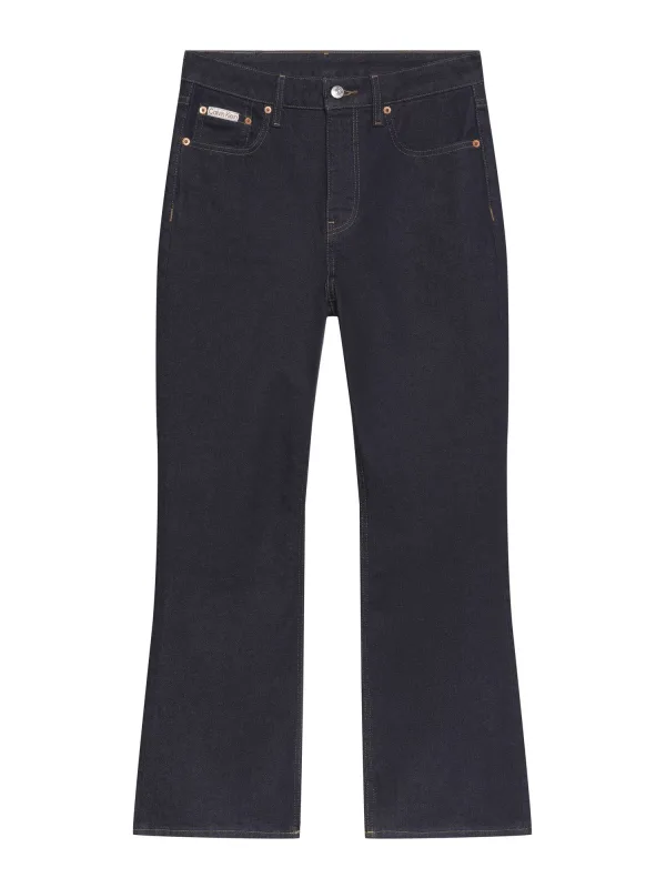 Design: Gevoerde zoom/rand, Ritssluiting, 5-pocket-style; Type sluiting: Ritssluiting; Materiaal: Denim; Motief: Effen; Extra's: Contrasterende naden, Label patch/label flag, Vaste grip; Wassing: Blauw denim; Lengte: 7/8 lengte; Pasvorm: Flared; Taillehoogte: Mid waist