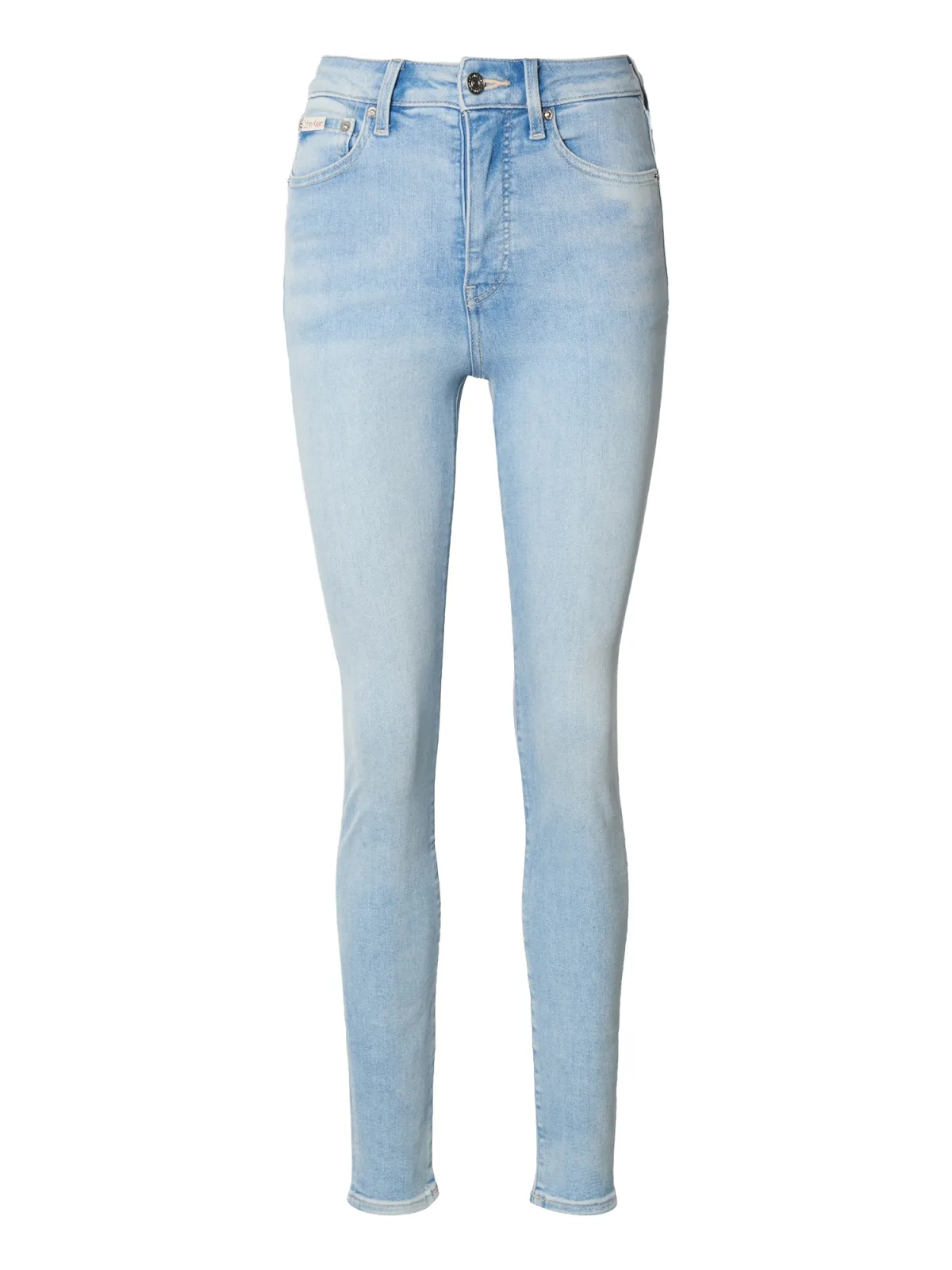 Design: Gevoerde zoom/rand, Ritssluiting, 5-pocket-style; Type sluiting: Ritssluiting; Materiaal: Denim; Motief: Effen; Extra's: Contrasterende naden, Label patch/label flag, Gewassen effect, Vaste grip, Riemlussen; Wassing: Light washed; Lengte: Lang/maxi; Pasvorm: Skinny; Taillehoogte: High waist