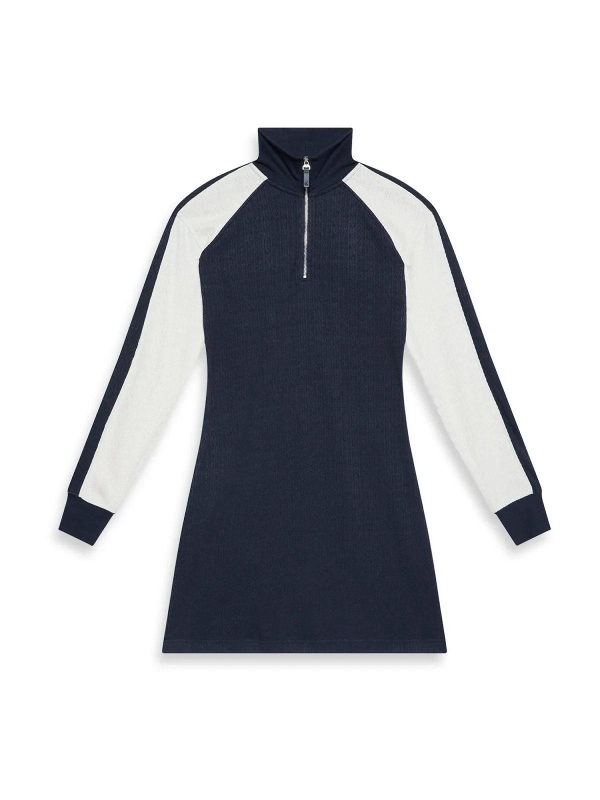 Design: Gevoerde zoom/rand, Geribd ceintuurtje, Halve rits; Type sluiting: Ritssluiting; Materiaal: Viscose; Halstype: Schipperskraag; Motief: Color-Blocking; Details: Mesh; Extra's: Op staal naden, Koele grip, Met textuur; Lengte: Kort/mini; Snit: Uitlopend; Pasvorm: Normale pasvorm; Armlengte: Lange mouw