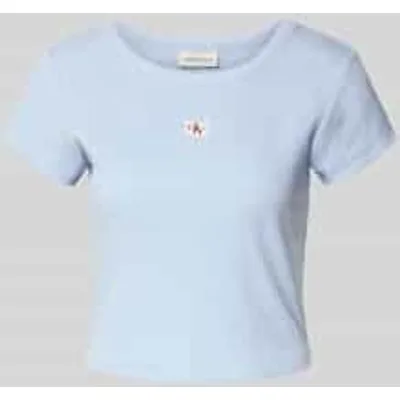 T-shirt voor dames van Calvin Klein Jeans;Mix van katoen en elastaan;Kort;Labeldetail;Ronde hals;Ruglengte bij maat S: 43 cm