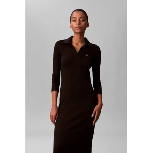 Deze CALVIN KLEIN JEANS jurk heeft lange rechte mouwen en een polo kraag. Deze jurk is gemaakt van katoen en valt tot op de kuit. Het model is midi.