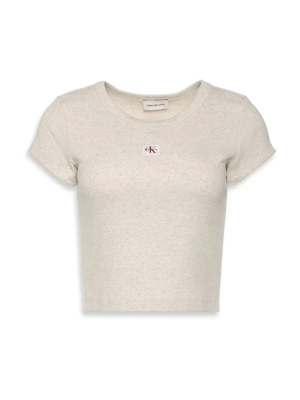 Design: Gevoerde zoom/rand, Rechte zoom, Geribbeld gebreid, Ingelegde kraag; Materiaal: Jersey; Halstype: Ronde hals; Motief: Mélange; Extra's: Label patch/label flag, Met textuur, Voelt zacht aan; Pasvorm: Slanke pasvorm; Armlengte: Kwartmouw; Lengte: Korte pasvorm
