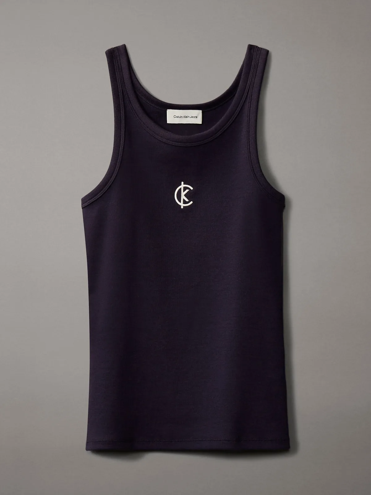 Design: Geribbelde kraag; Materiaal: Jersey; Halstype: Ronde hals; Motief: Effen; Soort bandjes: Normale bandjes; Details: Borduursels; Extra's: Label borduurwerk; Pasvorm: Slanke pasvorm; Armlengte: Mouwloos; Lengte: Normale lengte