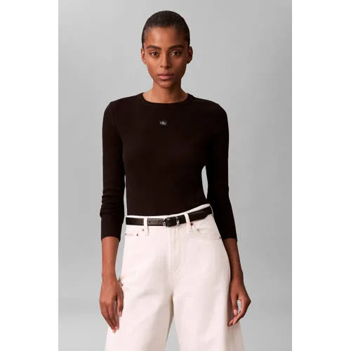 CALVIN KLEIN JEANS top zwart rib gebreid Prijzen