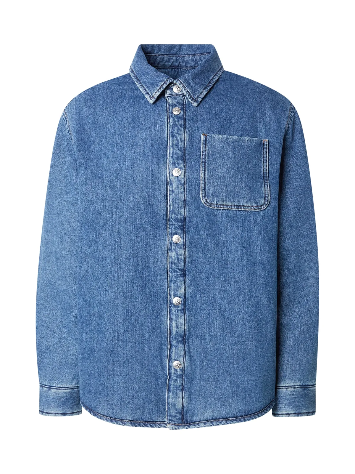 Design: Overcut schouder, Borstzak; Type sluiting: Drukknoop; Type jas: Indoor; Voering: Niet gevoerd; Materiaal: Denim; Motief: Effen; Extra's: Gewassen effect, Stevige stof; Pasvorm: Losse pasvorm