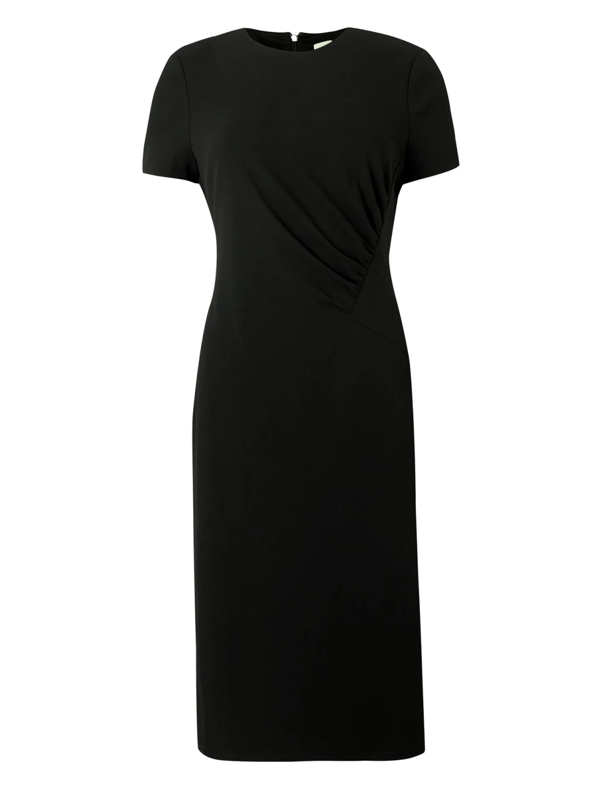 Design: Gevoerde zoom/rand, Rechte zoom, Rug rits; Type sluiting: Ritssluiting; Materiaal: Crêpe; Halstype: Ronde hals; Motief: Effen; Details: Gedrapeerd; Extra's: Label plaatje, Op staal naden, Voelt zacht aan; Lengte: Knielengte; Snit: Getailleerd; Pasvorm: Slanke pasvorm; Armlengte: Kwartmouw