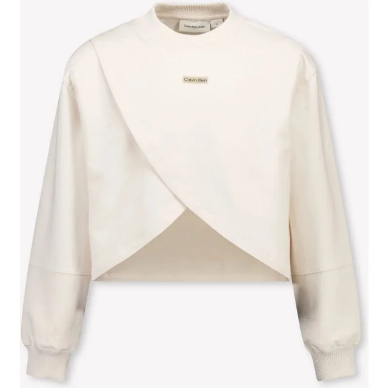 Deze off white meisjestrui van Calvin Klein straalt pure elegantie uit. Met z’n unieke overlapdesign en verfijnde cropped pasvorm geef je elke outfit een moderne twist. Het zachte katoen voelt heerlijk aan op de huid, terwijl het subtiele logo op de borst de iconische Calvin Klein-look benadrukt. Perfect voor jonge stijlbewuste fashionista’s die houden van minimalisme met karakter Tijdloos design Minimalistische look Cropped pasvorm Subtiel merkembleem Zacht op de huid Lichtgewicht gevoel Comfortabel voor dagelijks gebruik CALVIN KLEIN KIDS IG0IG03070 ZOMER 2026 SUPERSTELLAR ID: 15627672060286