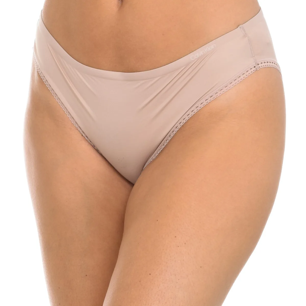 Calvin Klein slip. Bruine kleur Kanten contouren. Merknaam op bovenkant. Binnenvoering. Naad te zien aan toon. Samenstelling: - 62% Nylon - 38% Elastaan. Wasvoorschriften: - Maximaal wassen op 30ºC. - Strijken op gemiddelde temperatuur, max. 110 ° C. - Mag niet in de droger. - Geen bleekmiddel gebruiken. - Kan niet chemisch gereinigd worden.