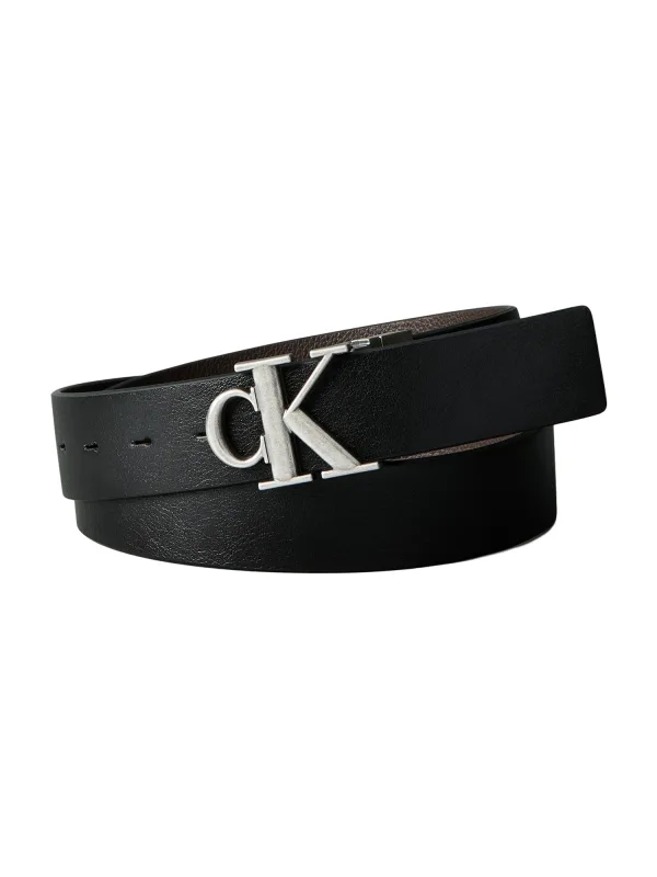 Calvin Klein Buckle Tumbled 35 Belt Black/dark Brown/antique Silver