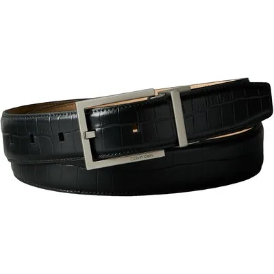 Calvin Klein Square Buckle Croc Belt Black/brushed Nickel