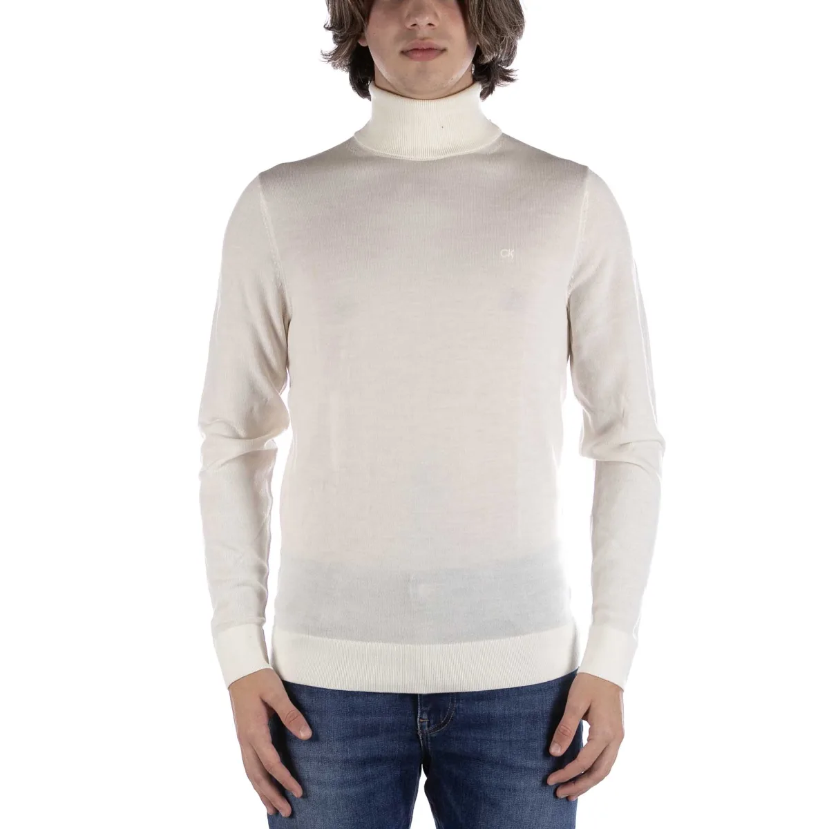 Specificaties: Coltrui gemaakt van extra fijne merinowol. CK-logo geborduurd op de borst, toon op toon. Geribbelde kraag, manchetten en onderkant. Pasvorm: Regular Het model draagt maat: M Hoogte model: 180 cm