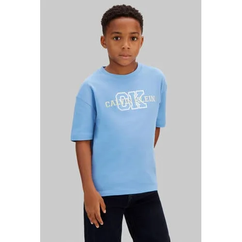 Dit blauwe Calvin Klein T-shirt voor jongens is een praktische basic voor elke dag, met de herkenbare stijl van het merk. Het T-shirt heeft een ronde hals, korte mouwen en een logo op de voorkant. Gemaakt van 100% katoen voelt de stof zacht en soepel aan op de huid, prettig voor schooldagen, speelafspraken en vakanties.Kenmerken van dit blauwe jongens T-shirt Klassiek model met ronde hals en korte mouwen Gemaakt van 100% katoen voor een zachte, ademende touch Blauwe kleur die eenvoudig te combineren is met jeans of shorts Calvin Klein logo op de borst voor een herkenbare, moderne look Geen borstzak, waardoor het shirt rustig oogt Eén T-shirt per verpakking, handig als dagelijkse basicVoor school, vrije tijd en vakantieDit T-shirt is geschikt voor allerlei momenten. Het lichte materiaal draagt prettig tijdens actieve dagen en is gemakkelijk te combineren met een spijkerbroek, joggingbroek of korte broek. Fijn als los T-shirt in de zomer en net zo handig onder een vest of hoodie wanneer het frisser is.Calvin Klein voor kidsCalvin Klein staat bekend om strakke lijnen en tijdloze basics. De kinderkleding sluit hier mooi op aan, met comfortabele fits en herkenbare logo's. Zo krijgt elke outfit een moderne uitstraling, terwijl de materialen zijn gekozen voor dagelijks draaggemak.Een comfortabele blauwe basic met logo die vaak uit de kast gepakt wordt.