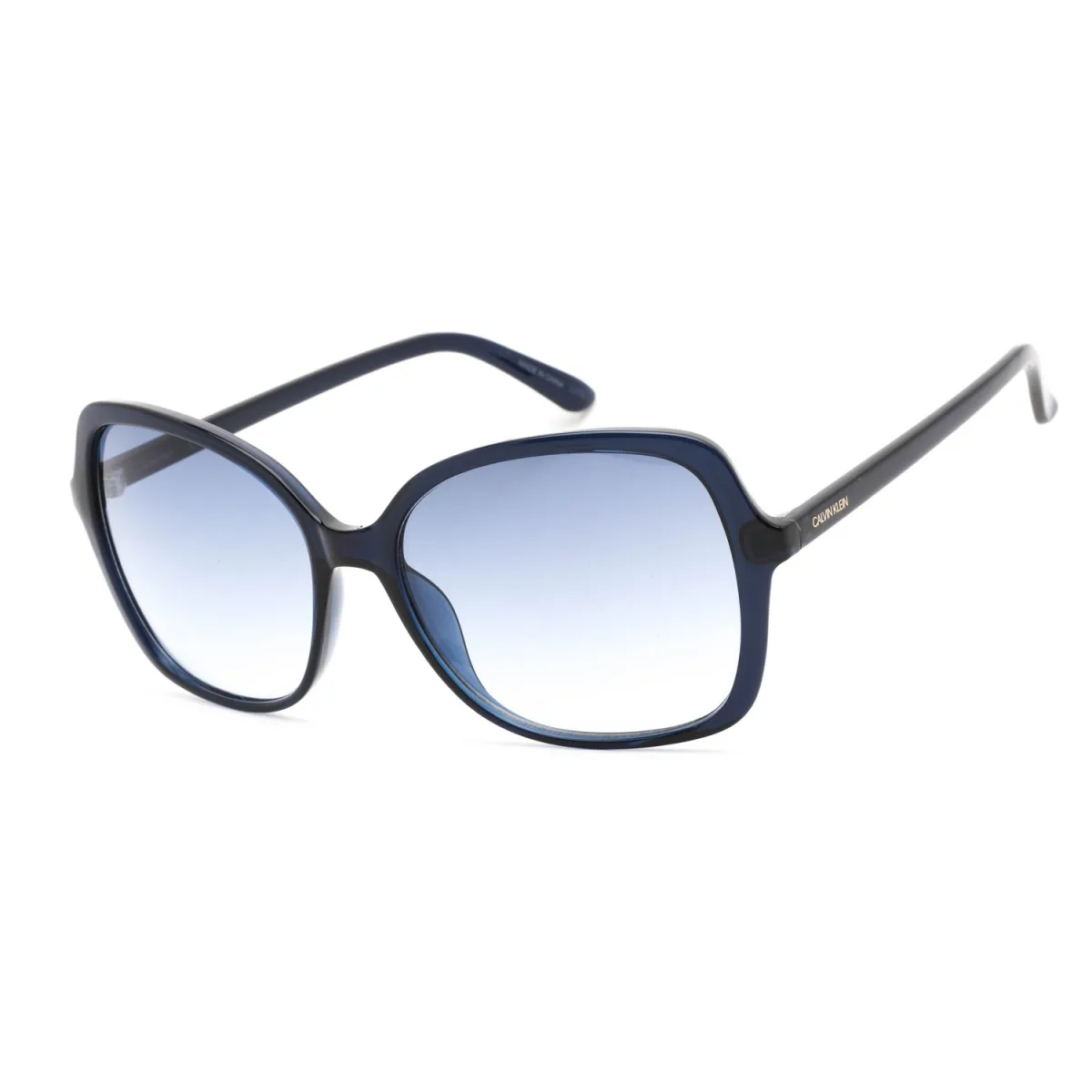 Calvin Klein Butterfly Womens Milky Navy Blue Gradient CK19561S zonnebril heeft een prachtig vlindervormig montuur van lichtgewicht acetaat. Het oversized montuur is super chique en is voorzien van Calvin Klein-merktekens langs de slapen.