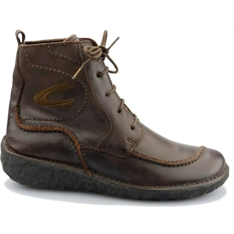 Camel Active, platte enkellaarsjes van leer. Vetersluiting. Rubberen zool met goede grip en schokdemper. Uitneembare binnenzool.
