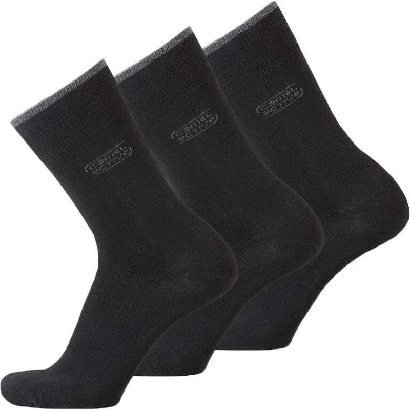 Herensokken van Camel Active in een set van 3, gemaakt van een zachte mix van materialen met biologisch katoen. Basic sokken met het Camel Active-logo en een subtiele contrasterende streep op de boord.
