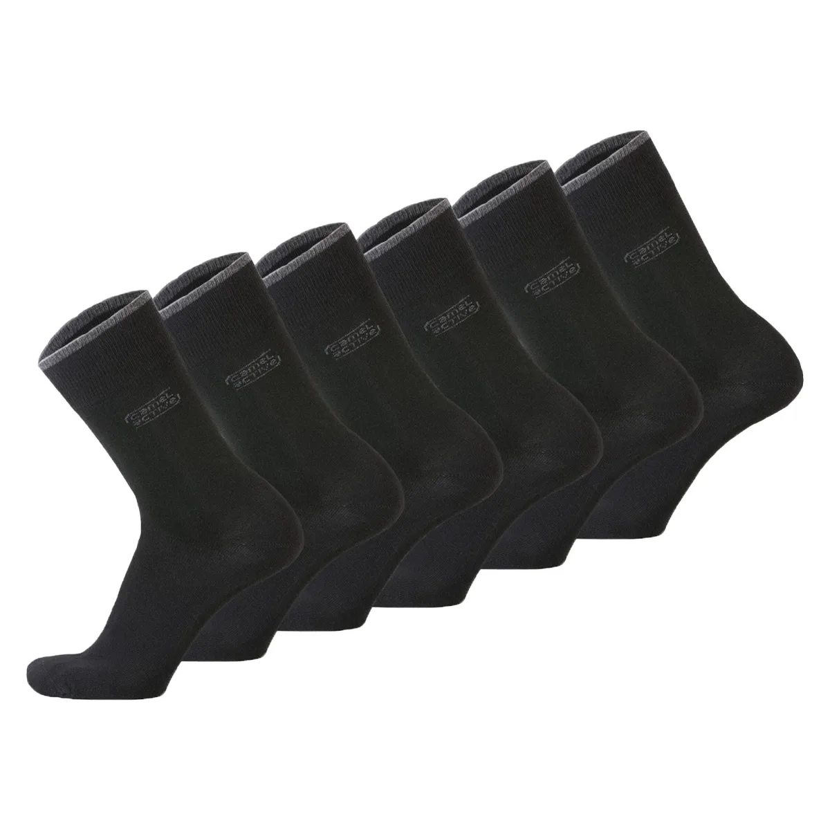Herensokken van Camel Active in een verpakking van 6 stuks, gemaakt van een zachte mix van materialen met biologisch katoen. Basic sokken met het Camel Active-logo en een subtiele contrasterende streep op de boord.