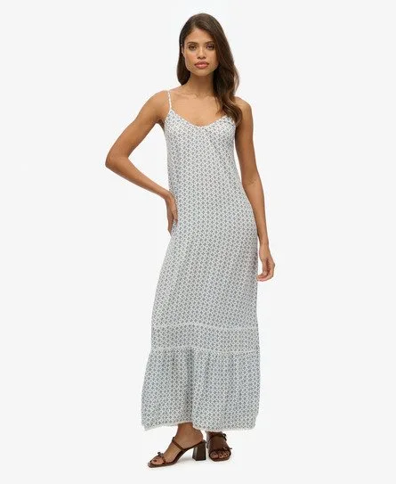 Loose Fit - where comfort meets cool, a stylish loose cut makes this a must-have shape Adjustable spaghetti straps and a v-neckline Maxi length with a tiered skirt and lace trims Back cut-out Designed for those sun-kissed days when elegance is the aim, the Cami Maxi Dress is crafted from a lightweight woven material for a graceful, effortless silhouette, allowing the sweeping skirt to float around you as you move. The adjustable straps and elasticated cut-out at the back ensure the right fit wit