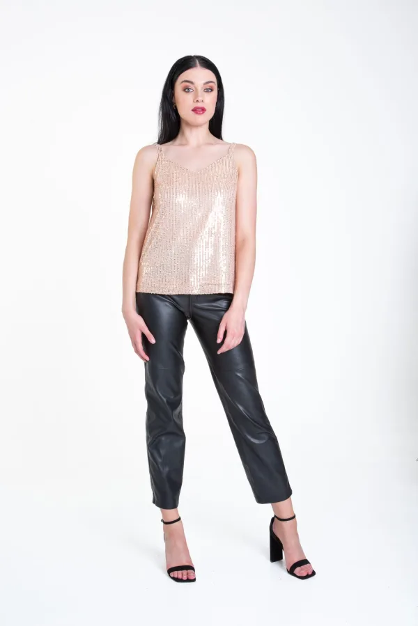 Cami-top met V-hals en pailletten
