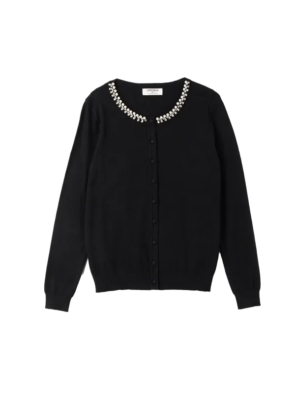 Design: Placket, Geribd ceintuurtje; Materiaal: Knitwear; Halstype: Ronde hals; Motief: Effen; Details: Sierstenen; Extra's: Op staal naden; Pasvorm: Normale pasvorm; Armlengte: Lange mouw; Lengte: Normale lengte