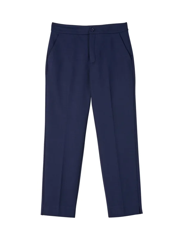 Design: Paspelzak, Zakken aan de zijkant; Type sluiting: Knoopsluiting; Materiaal: Viscose; Motief: Effen; Details: Plooien; Extra's: Op staal naden; Wassing: Blauw denim; Lengte: 7/8 lengte; Pasvorm: Slimfit; Taillehoogte: Mid waist