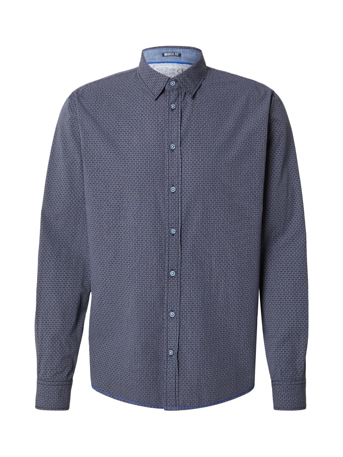 Design: Gevoerde zoom/rand, Knop placket, Ronde zoom; Type sluiting: Knoopsluiting; Materiaal: Katoen; Kraag: Kentkraag; Extra's: All-over patroon, Voelt zacht aan; Pasvorm: Slim fit; Armlengte: Lange mouw