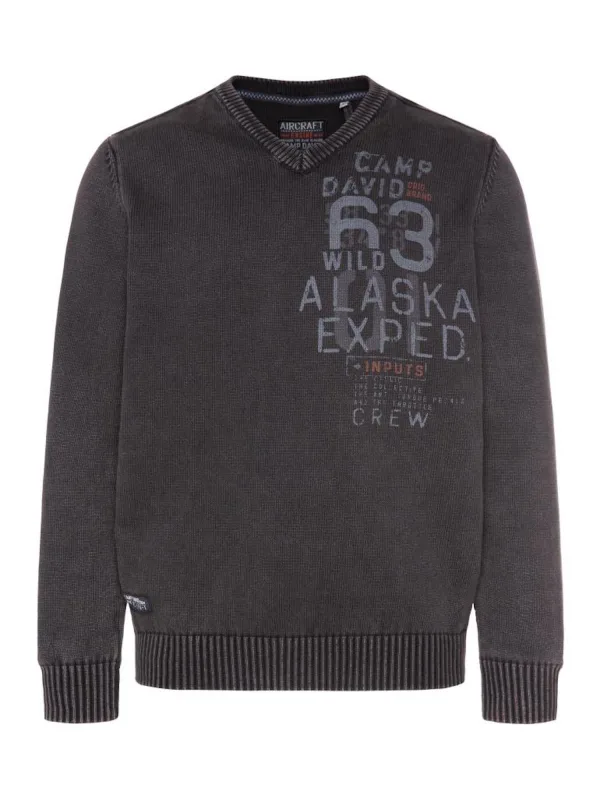 Deze gebreide trui voor heren is een must-have in je garderobe. Hij heeft een normale pasvorm en is gemaakt van hoogwaardig materiaal dat zeer comfortabel is om te dragen. De trui heeft een V-hals met geribde boorden. De manchetten en zoom hebben ook een geribde look. Het stone-washed dessin geeft de trui een bijzondere uitstraling. Prints op de voorkant en de hals geven de trui een visueel accent. Een labelpatch boven de zoom rondt het ontwerp af.