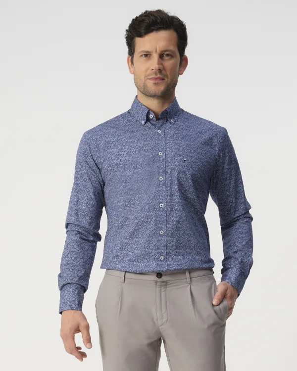 Campbell | Heren | Casual Overhemd Donkerblauw Prijzen