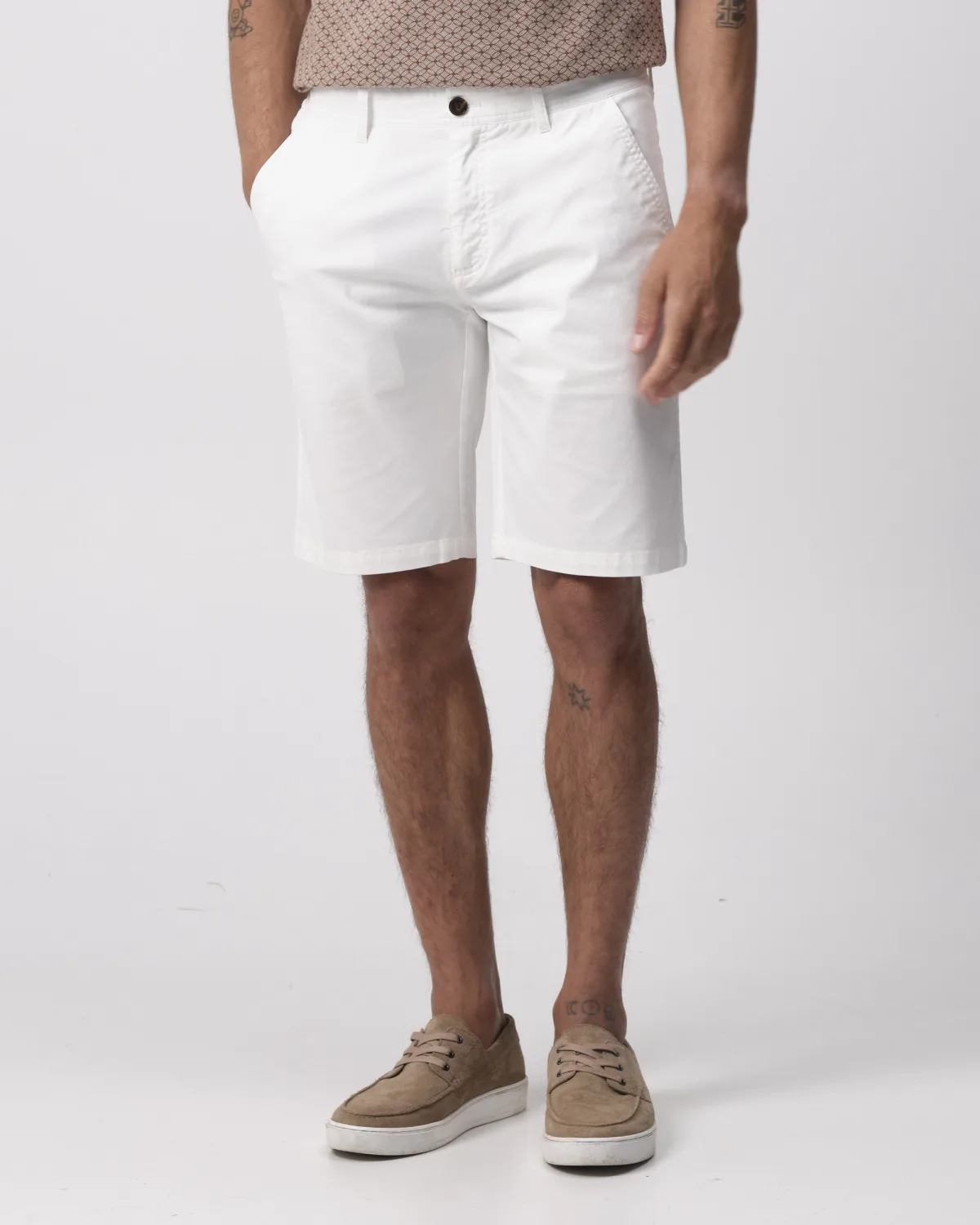 Stijlvolle Korte broeken voor mannen in maat: 38. Gemaakt van 98% katoen, 2% elastomeer voor comfortabele pasvorm. Shop deze trui in de kleur: Wit die perfect is voor elke gelegenheid. Deze Korte broeken combineert kwaliteit met een moderne pasvorm– onmisbaar in elke herengarderobe!