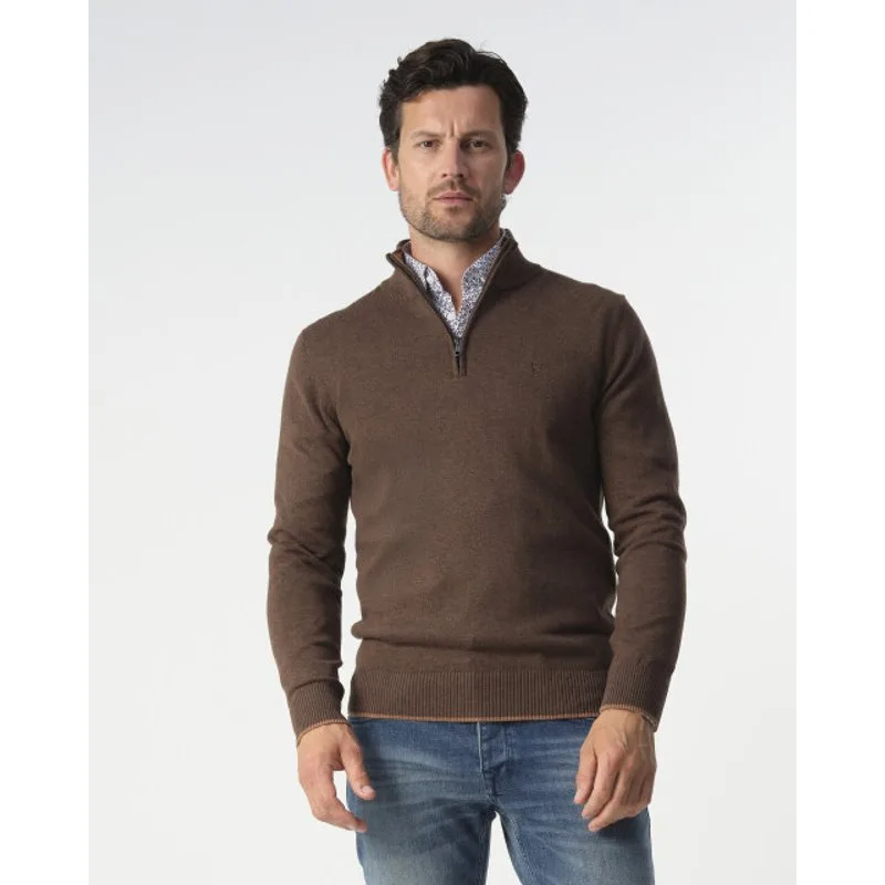 Campbell Sydney Schipperstrui biedt een perfecte mix van stijl en comfort. Gemaakt in de rijke kleur Coffee Bean brown melange, met een subtiele ritssluiting voor die extra touch. Het fijngebreide patroon en de hoogwaardige constructie maken het een ideaal kledingstuk voor alle gelegenheden. Campbell staat voor kwaliteit en tijdloze ontwerpen die passen bij elke garderobe. - Over het merk: De herenkleding van Campbell is klassiek met een moderne twist voor een doelgroep die vol van het leven geniet. Campbell heeft warme trendkleuren, prints en materialen in het assortiment. De comfortabele pasvorm van de kledingstukken biedt een heerlijk draagcomfort en voldoende bewegingsruimte. Ieder kledingstuk van Campbell wordt gemaakt van hoogwaardige stoffen en is perfect afgewerkt.