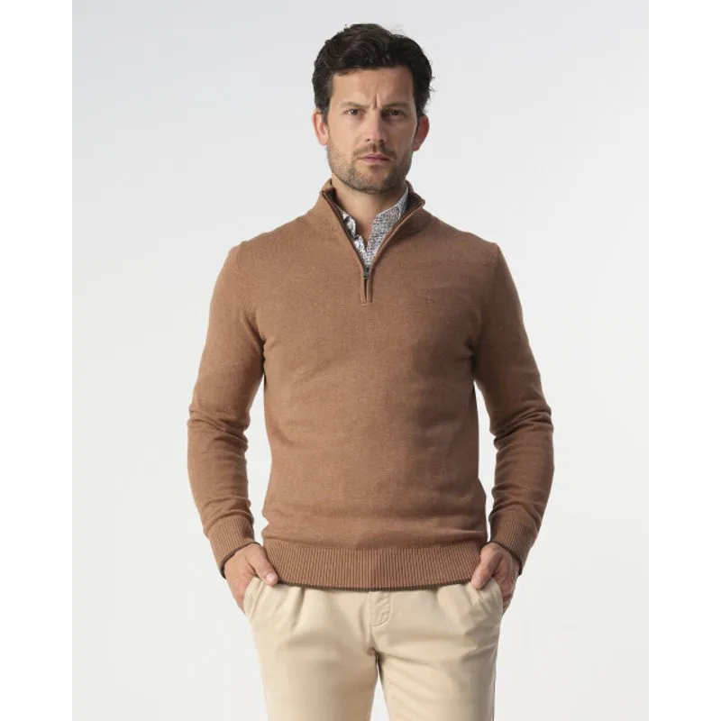 Campbell Sydney Schipperstrui in een warme thrush brown melange is je nieuwe favoriet. Gemaakt van een zachte, fijne wolmix, heeft het een halve ritssluiting en geribde boorden voor een comfortabele pasvorm. Perfect voor casual en nette gelegenheden. Campbell combineert stijl en kwaliteit moeiteloos, waardoor je altijd goed voor de dag komt met hun elegante en duurzame ontwerpen. - Over het merk: De herenkleding van Campbell is klassiek met een moderne twist voor een doelgroep die vol van het leven geniet. Campbell heeft warme trendkleuren, prints en materialen in het assortiment. De comfortabele pasvorm van de kledingstukken biedt een heerlijk draagcomfort en voldoende bewegingsruimte. Ieder kledingstuk van Campbell wordt gemaakt van hoogwaardige stoffen en is perfect afgewerkt.
