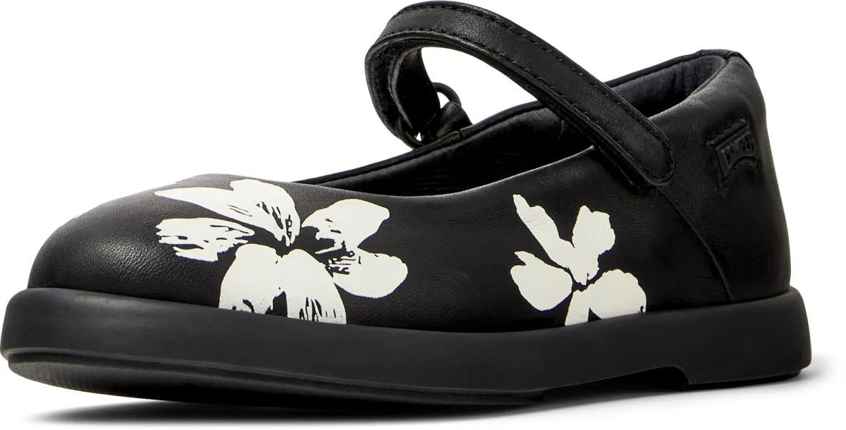 Design: Versterkte hak; Type sluiting: Velcro sluiting; Materiaal: Leer; Motief: Bloemenprint; Materiaal: Glad leer; Schoenneus: Ronde neus; Extra's: Stevige stof, Flexibele zool; Hakhoogte: Platte hak (0-3 cm)