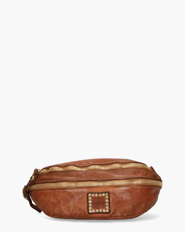 Heuptas of crossbody bag Leto C036430ND.X0001.C1502 van het Italiaanse tassenmerk Campomaggi. Deze tas, met handige dubbele ritssluiting vooraan, is gemaakt van natuurlijk gelooid cognackleurig leer met een vintage uitstraling. Aan de canvas binnenkant bestaat dit model uit een compartiment met daarin een ritsvak. Aan de achterkant